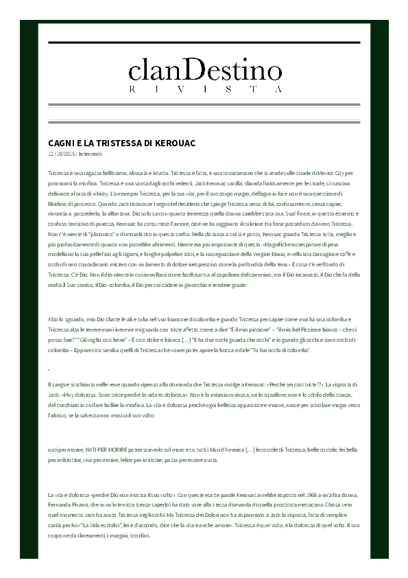 Pdf La Tristessa Di Kerouac Rivista Clandestino 2015 Pietro Cagni Academia Edu Bellezza E Tristezza Anobii