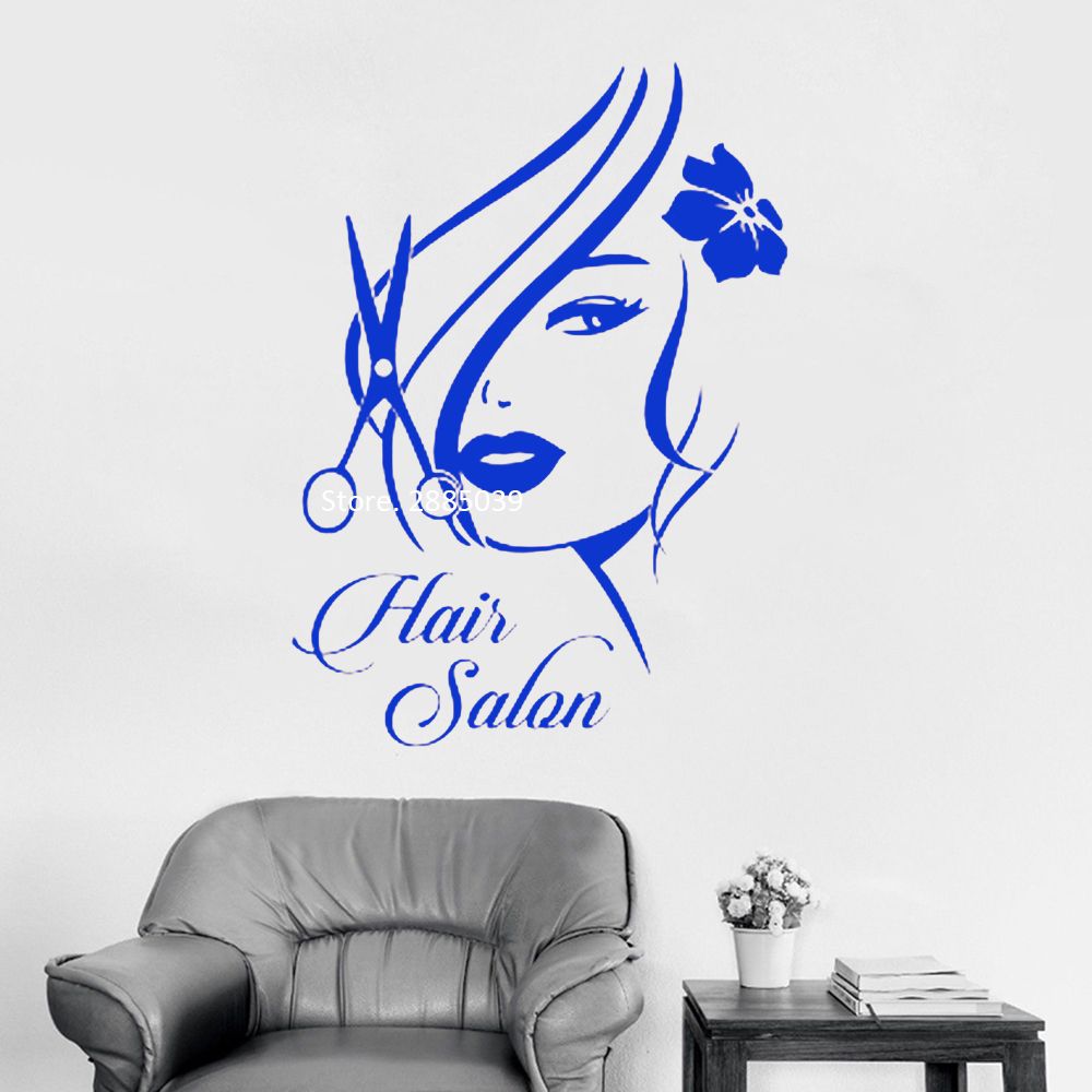 Compre Vinilos De Pared De Vinilo Logo Para El Salon De Belleza Chica Con Elegantes Pegatinas De Pared Para El Pelo Decoracion Para El Hogar Etiqueta De Arte Tijeras Corte De Pelo Belleza Ideal Filosofia