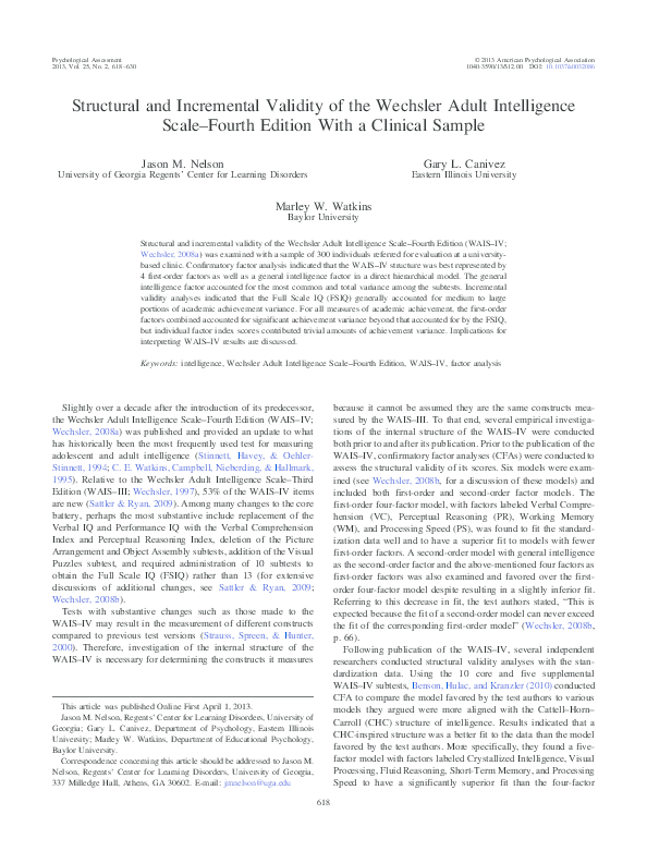 Pdf Structural And Incremental Validity Of The Wechsler Adult Intelligence Scale Fourth Edition With A Clinical Sample Marley Watkins Academia Edu Hotel The Bellezza Suites